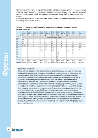 Таблица 27. Указатель выбора наиболее распространённых торцевых фрез с