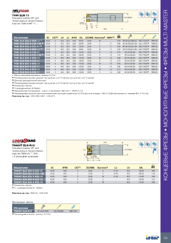 Пластины см. стр.: T490 LNMT/LNHT 1106 (477) КОНЦЕВЫЕ ФРЕЗЫ • МОНОЛИТНЫЕ ФРЕЗЫ • ФРЕЗЫ MULTI-MASTER