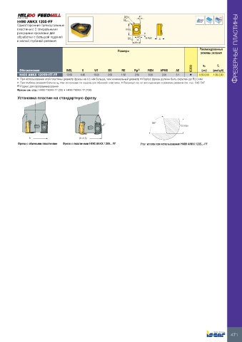 •  При использовании этой пластины диаметр фрезы на 0.5 мм больше, чем номинальный диаметр • Корпус фрезы должен быть скруглен до R2.0 мм