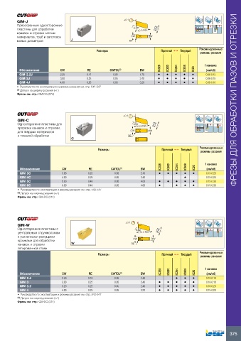 Фрезы см. стр.: GM-DG (374) ФРЕЗЫ ДЛЯ ОБРАБОТКИ ПАЗОВ И ОТРЕЗКИ
