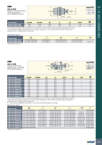 Обозначение DCONMS DCONWS BD LF LB LSCWS kg DIN 69893 HSK A / E