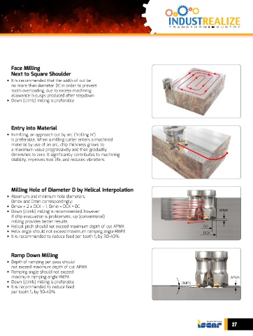 • Helical pitch should not exceed maximum depth of cut APMX DC
