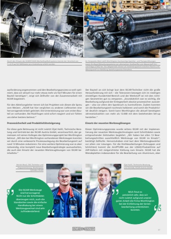 Im Composite-Werk stellt Worthington hochwertige Speicher- und Transportl%u00f6sungen sowie On-Board-Betankungssysteme von alternativen Kraftstoffen wie Wasserstoff (H2 ) und Erdgas (CNG) her. Die Adapterteile dienen als Verbindungsst%u00fcck zwischen Flasche und Messingventil zur Bef%u00fcllung beziehungsweise Entnahme.ausforderung angenommen und den Bearbeitungsprozess so weit optimiert, dass wir aktuell nur mehr etwas mehr als f%u00fcnf Minuten f%u00fcr einen Bauteil ben%u00f6tigen%u201c, zeigt sich Zellhofer von der Zusammenarbeit mit ISCAR begeistert.F%u00fcr den Abteilungsleiter trennt sich bei Projekten wie diesen die Spreu vom Weizen: %u201eISCAR hat hier verglichen zu anderen Lieferanten eine hervorragende Arbeit geleistet. Die Unterst%u00fctzung war vom ersten Bauteil an vorhanden. Bei R%u00fcckfragen wird sofort reagiert und wir f%u00fchlen uns daher bestens betreut.%u201cProzesssicherheit und Produktivit%u00e4tssteigerungF%u00fcr diese gute Betreuung ist nicht zuletzt Zijat Halili, Technische Beratung und Vertrieb bei der ISCAR Austria GmbH, verantwortlich, der gemeinsam mit seinen Kollegen das Optimierungsprojekt bei Worthington betreut. %u201eMit den bei Worthington vorhandenen Werkzeugen konnten wir durch eine verbesserte Prozessauslegung die Bearbeitungszeit auf rund 13 Minuten reduzieren. F%u00fcr eine weitere Optimierung war es aber notwendig, eine komplett neue Bearbeitungsstrategie auszuarbeiten, die auch den Einsatz der neuesten Werkzeugl%u00f6sungen von ISCAR beinhaltete.%u201c Der Bauteil an sich bringt laut dem ISCAR-Techniker nicht die gro%u00dfe Herausforderung mit sich %u2013 die Toleranzen bewegen sich im niedrigen einstelligen Hundertstel-Bereich und der Werkstoff sei mit den richtigen Geometrien gut zu zerspanen. %u201eGrunds%u00e4tzlich war es wichtig, die Bearbeitung aufgrund der Einlegearbeit absolut prozesssicher auszulegen %u2013 also vor allem den Spanbruch zu kontrollieren. Zudem konnten wir die Bearbeitungszeit nochmals halbieren und somit die Produktivit%u00e4t deutlich steigern. Somit kann Worthington die aktuell ben%u00f6tigten Jahresst%u00fcckzahlen von mehr als 12.000 mit dem bestehenden Set-up herstellen.%u201cEinsatz der neuesten Werkzeugl%u00f6sungenDieser Optimierungsprozess wurde seitens ISCAR mit der Implementierung der neuesten Werkzeugtechnologien samt Schnittdaten sowie entsprechender Zeitstudien begleitet. %u201eWir haben bei allen 13 Bearbeitungsschritten ausschlie%u00dflich Werkzeuge von ISCAR im Einsatz%u201c, best%u00e4tigt Zellhofer. Hervorzuheben sind laut dem Werkzeugbauleiter vor allem vier L%u00f6sungen. F%u00fcr die Drehbearbeitungen (Schruppen und Schlichten) kommt die ALUPTURN aus der LOGIQ-Produktlinie auf JHP-Haltern mit zielgerichteter K%u00fchlung zum Einsatz. ISCAR hat die Wendeplatten insbesondere f%u00fcr die Bearbeitung von Aluminium, aber Durch den Einsatz des SUMOCHAM-Wechselkopfbohrsystems konnte der Vorschub von f = 0,15 auf 0,5 Millimeter pro Umdrehung erh%u00f6ht werden.Zijat Halili, Technische Beratung und Vertrieb, ISCAR Austria GmbHMich freut es pers%u00f6nlich sehr, dass wir nicht zuletzt aufgrund unserer guten Arbeit die Firma Worthington bei der Einf%u00fchrung der Serienbearbeitung unterst%u00fctzen konnten.Patrick Musil, CNC-Techniker und Programmierung, Worthington Cylinders GmbHDie ISCAR-Werkzeuge sind hervorragend.Nicht nur die Schnittdaten %u00fcberzeugen mich, auch die Standzeiten sowie die einfache Handhabung bei einem Werkzeugwechsel sind sehr zufriedenstellend.67