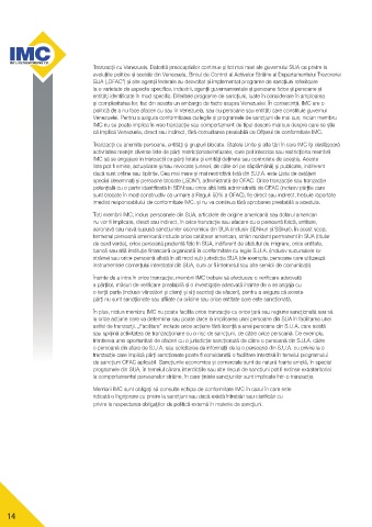 că implică Venezuela, direct sau indirect, fără consultarea prealabilă cu Ofițerul de conformitate IMC.