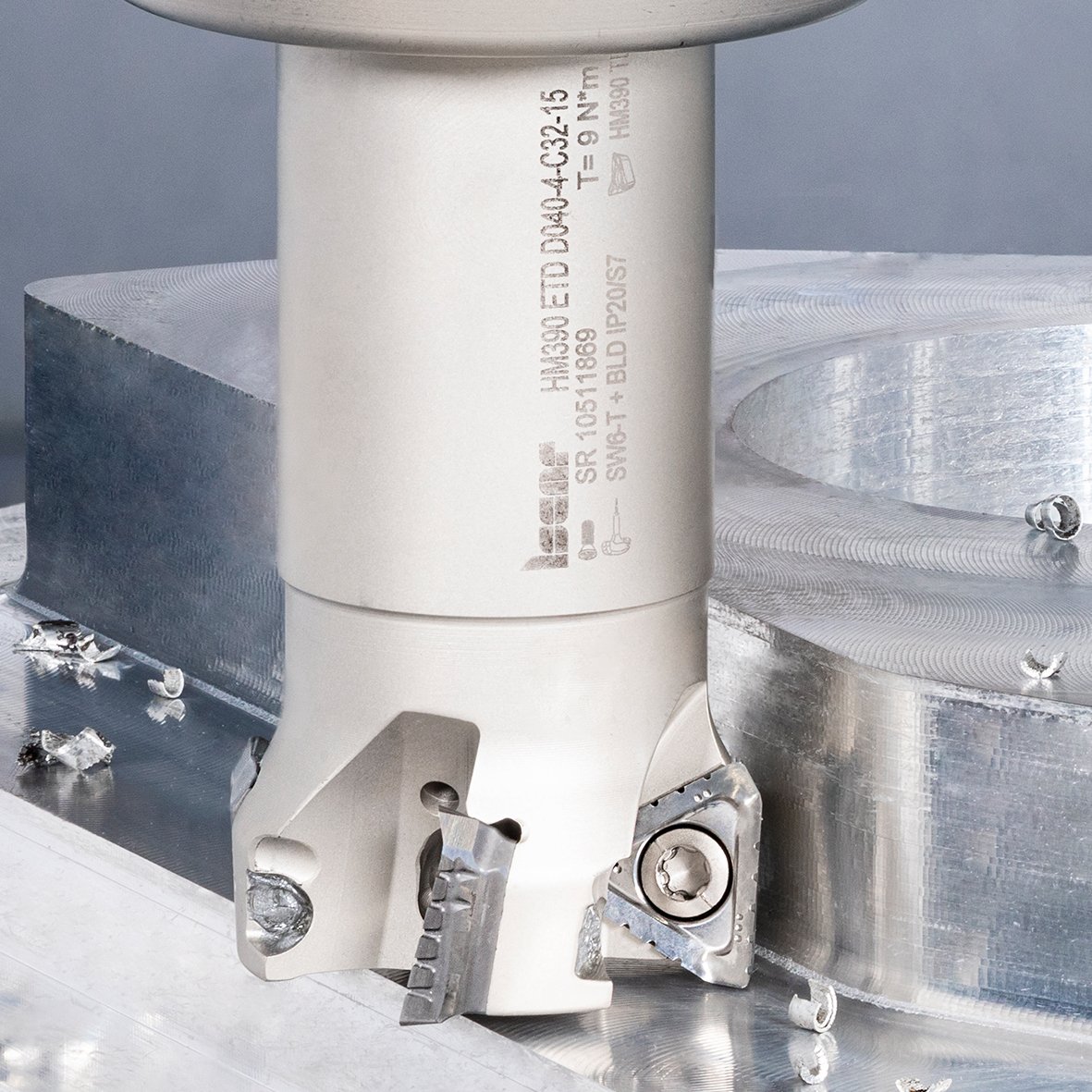 Efficient milling of aluminum alloys and other non-ferrous materials (ISO N group of application) requires a sharp cutting edge and a polished rake face. The chip-splitting capability of a cutting edge is an additional tool to improve performance. The serrated edge geometry of the single-sided triangular HELI3MILL inserts, which have proven themselves as real workhorses in 90° milling, are cost-effective tools.