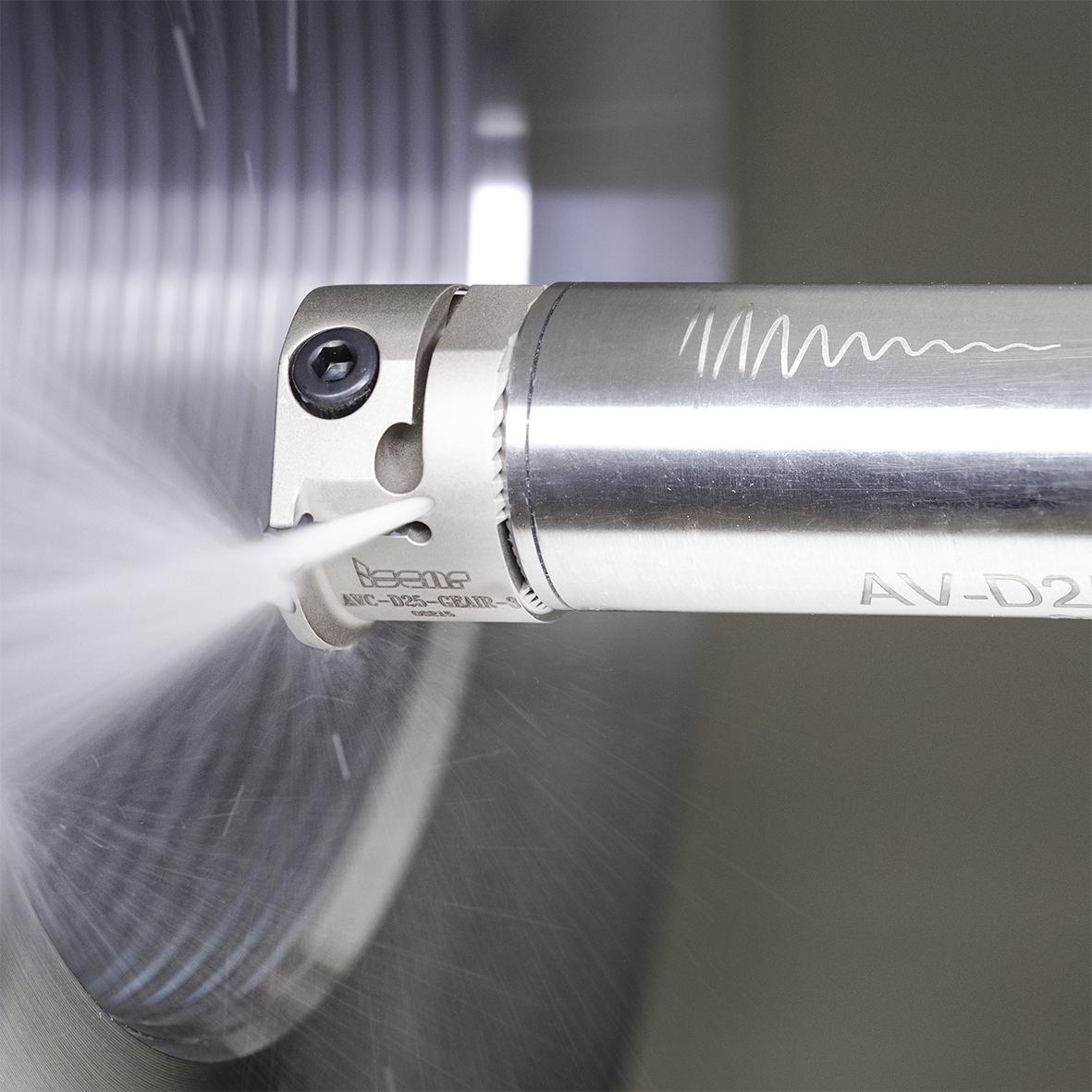 There are three types of bars to cover the complete range of boring applications for overhang-to-diameter ratios up to 10. Steel bars enable machining with ratios up to 4. Cemented carbide bars facilitate boring with ratios up to 7. However, when machining where a higher overhang is required, the use of a stiffen carbide shank can be somewhat limited. Hence, for ratios 7 to 10, ISCAR developed an anti-vibration bar that significantly reduces and eliminates vibrations when cutting. The key component of these bars is the damping mechanism comprising a heavy mass supported by spring elements. The success of the bars with exchangeable heads in the boring line led to the introduction of ISCAR’s design concept in various turning, grooving, and threading applications. In addition, the newly developed bars with a serrated-face connection and a polygonal taper shank increase the application field of the system.